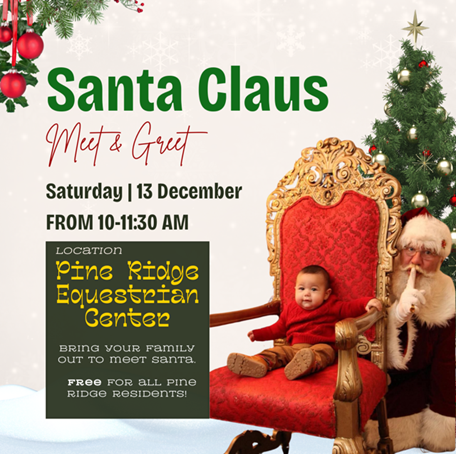 Great news! Santa will be making a special stop in our neighborhood this Saturday, December 13th, during the horse show!